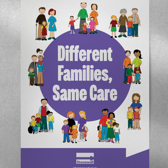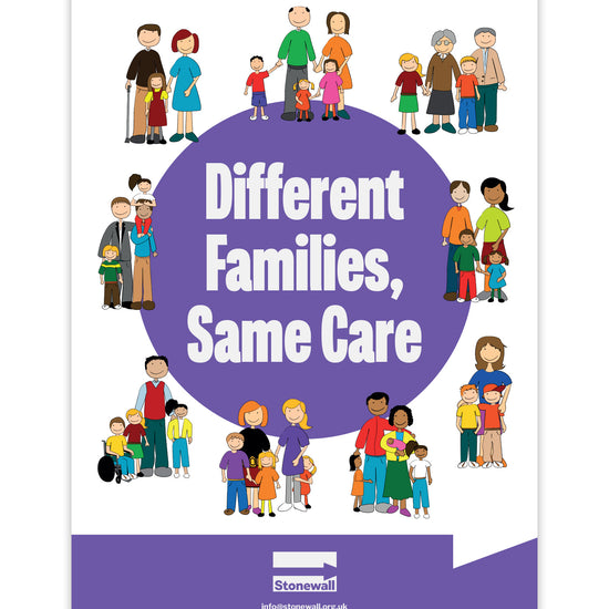 Our Different Families, Same Care poster celebrates all kinds of families, including LGBTQ+ families. Display it to spread the message that difference is welcome in your community – because when being different is celebrated, everybody is free to be themselves.